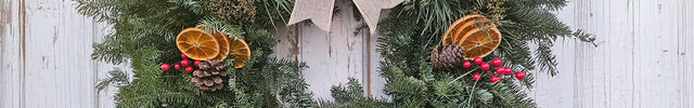Add some cheer to your front door with this festive holiday wreath. They come ready to hang or can be customized with ribbons, ornaments, or dried botanicals.